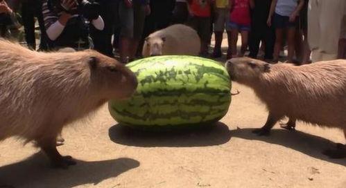 说到水豚,你可能不知道,它们可是世界上最大的啮齿类动物哦!水豚生活在南美洲的河流、湖泊和沼泽地带,以水生植物、果实和种子为食。而西瓜,对于它们来说,也是一种美味的食物。所以,水豚吃瓜的场景,其实是很正常的。